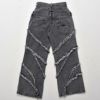 グレーはケミカルウォッシュ調の加工感と切り替えフリンジ加工で