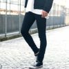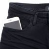 ストレッチの効いた素材を使用し、快適な穿き心地を実現したフィット感のある黒パンデニム。