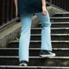 脚のラインをきれいに見せてくれる裾の広がったフレアデニムパンツ。