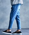 股上はやや深め、わたりにゆとりを持たせながら、膝下から裾にかけてテーパードを効かせた設計。