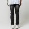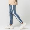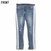 大胆に施された膝のクラッシュ加工とサイドラインがインパクト抜群のデニムパンツ。