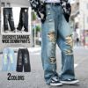 デニムパンツ メンズ ワイドパンツ ワイドデニム ジーンズ ジーパン 太め おしゃれ ダメージ クラッシュ ヴィンテージ ビンテージ CavariA キャバリア ブランド ブラック ブルー 黒 青 カジュアル ストリート ストリート系 M L 春 夏 秋 冬 父の日 父の日ギフト 父の日プレゼント 20代 30代 40代 メンズファッション 東京 プレゼント 誕生日 記念日 贈り物 ギフト