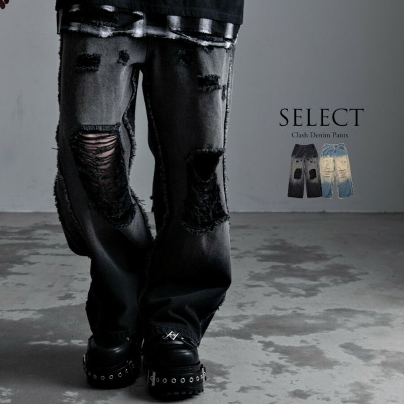 ストリート感溢れるデザイン大胆なグラデーションデザインとフリンジ加工が特徴のバギーデニム。