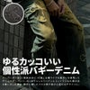 オーバーダイ加工(後染め加工)を施し古着ライクな風合いを表現したデニムバギーパンツ。