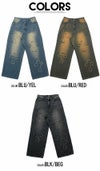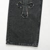 ワイドパンツ メンズ バギーパンツ おしゃれ ワイドデニムパンツ ワイドデニム ジーンズ ジーパン Gパン 太い ゆったり 古着風 ヴィンテージ ビンテージ クロス柄 十字架 色落ち ブラック ブルー 黒 青 M L ユニセックス 春 夏 秋 冬 春服 夏服 秋服 冬服 男 男性 大人 カジュアル ストリート ストリート系 ストリートファッション 韓国 韓国系 韓国ファッション モード 下北沢 下北系 古着 古着系 90s 90年代 2000年代 Y2K 父の日 父の日ギフト 父の日プレゼント 20代 30代 40代 メンズファッション 東京 プレゼント 誕生日 記念日 贈り物 ギフト ルーズフィット オーバーサイズ デニムワイドパンツ レトロデニム メンズルック ヴィンテージジーンズ ダメージ加工 ストリートスタイル カジュアルデニム メンズバギーパンツ