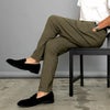 適度なテーパードシルエットが脚を長く美しく魅せ、体型カバー効果も抜群です。