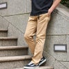 裾にかけて細くなるテーパードシルエットですがストレッチも効いているので穿き心地も抜群。