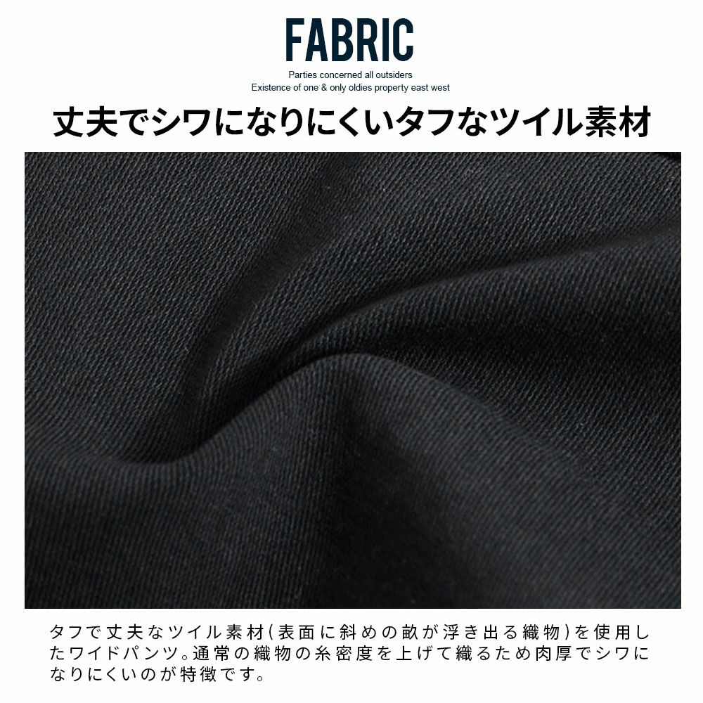 タフで丈夫なツイル素材(表面に斜めの畝が浮き出る織物)を使用したワイドパンツ。