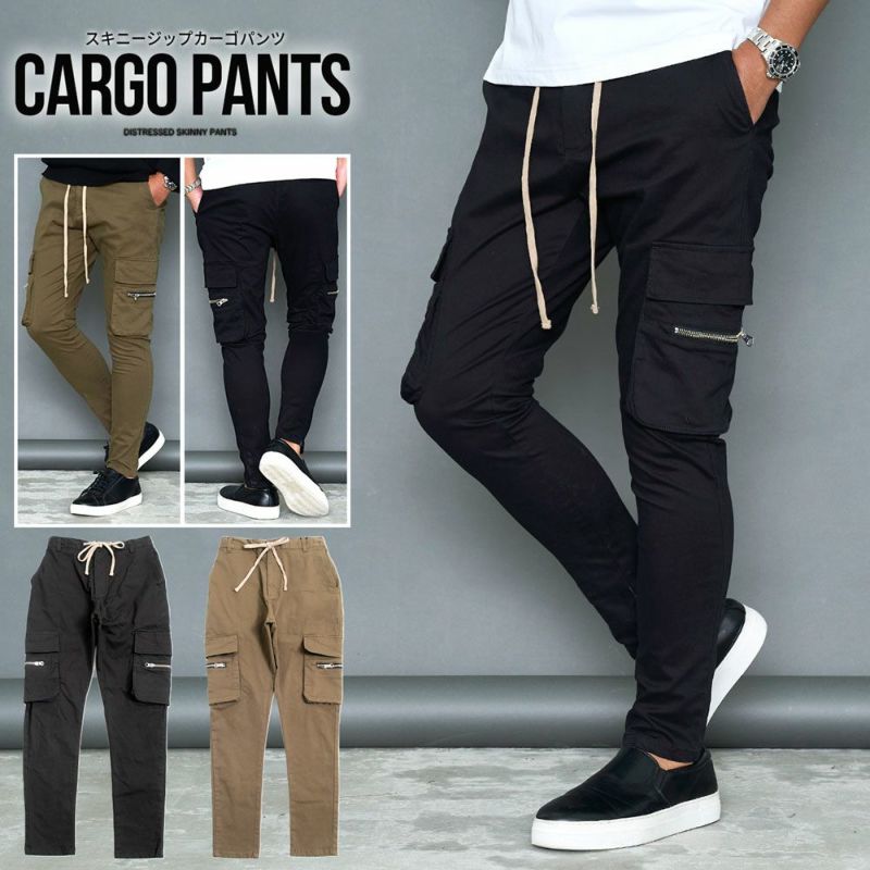 カーゴパンツ メンズ ブランド スキニーカーゴ 細身 タイト ジップポケット パンツ イージーパンツ カーゴ カジュアル スポーティー ミリタリー きれいめ ポケット 美脚 プレゼント ブラック 黒 CavariA 20代 30代 40代 メンズファッション 父の日 東京 プレゼント 誕生日 記念日 贈り物 ギフト