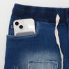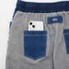 フロントはデニム、バックはスウェットと2つの素材で組み合わせた斬新なデザインのハーフパンツ。