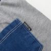 程よく施された色落ち加工や穿きこんだ様な風合いに加えて、バック部分を異素材で切り替えたコンビ使いのデザインがハードさと柔らかさを兼ね備えほかにはない表情をたのしめるアイテムに仕上がりました。