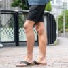 足元はスニーカーやスポーツサンダルと合わせることで、都会的なスポーツミックススタイルを簡単に演出できます。