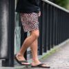すっきりとした膝上丈と派手すぎず落ち着いたレオパード柄が上品な雰囲気のハーフパンツ。