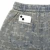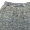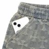 ケミカルウォッシュとオーバーダイ加工を施したヴィンテージライクなデニム地に、総柄のジャガードクロス(十字架)を全面にあしらった個性派ショートパンツです。