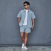 同素材のデニムシャツと合わせセットアップもおすすめです。