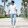 ノーダメージで立体感のある色落ち加工を施し、奥深く表情豊かなこだわりのスキニーパンツに仕上げました。
