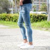 ストレッチ素材を使用し、快適な穿き心地を実現したアンクル丈のジーンズ。