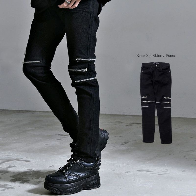 膝に3連ジップの切り替えデザインを施したハイエンドスキニーパンツです。