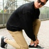 シンプルなデザインで合わせるトップスを選ばず着回しのしやすいオールシーズン使える一本です。