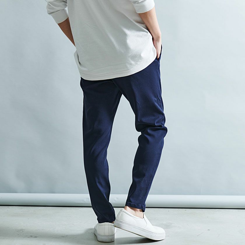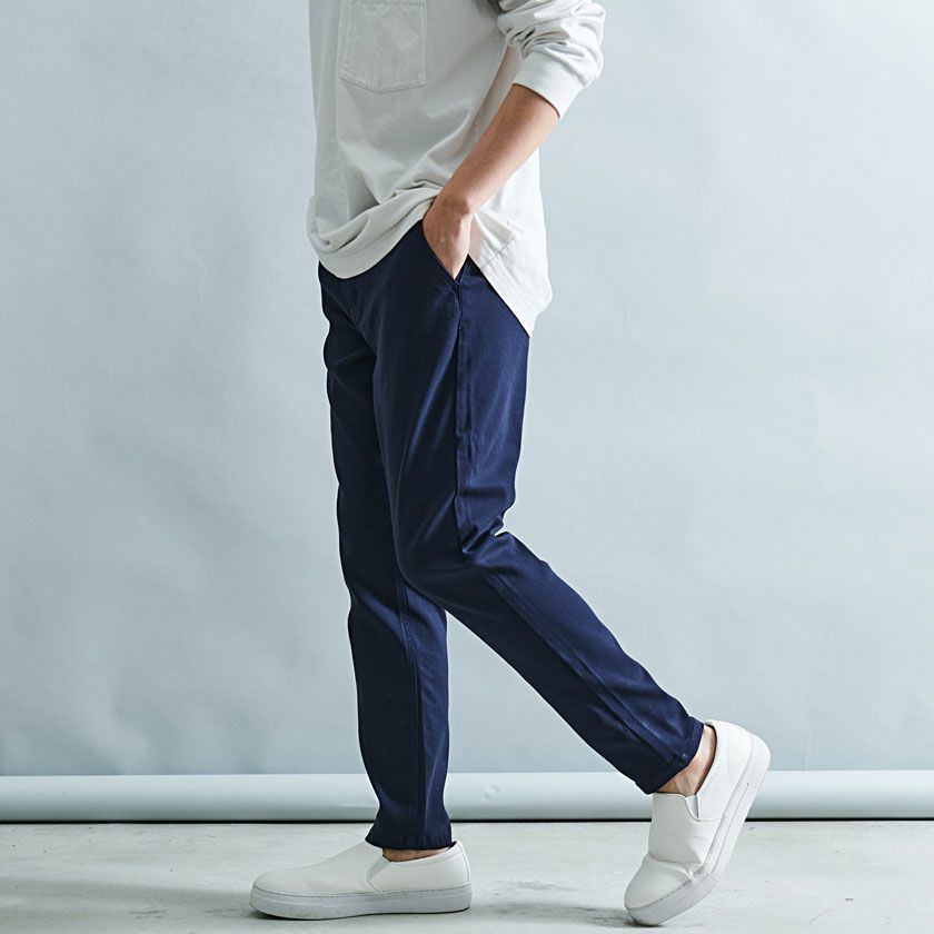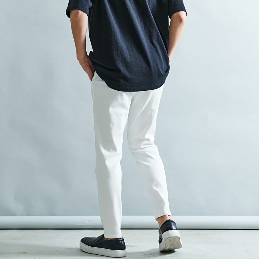 ツイルのパンツでありながら、伸縮性の高い驚きのストレッチ性を実現した快適な穿き心地の9分丈アンクルパンツ。