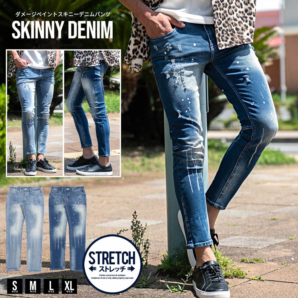CavariA【キャバリア】ペイントスキニーデニムパンツ/全2色