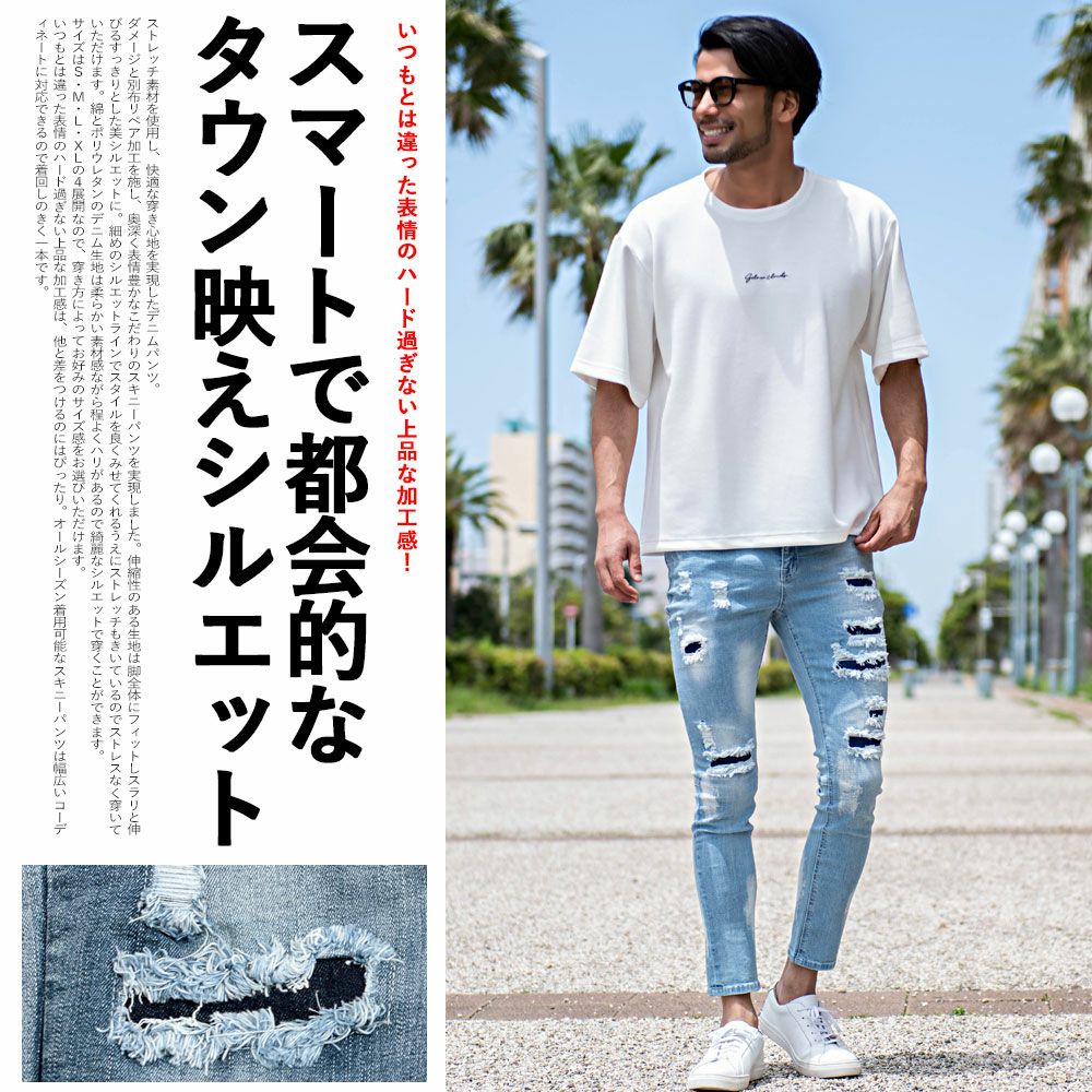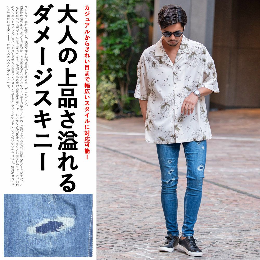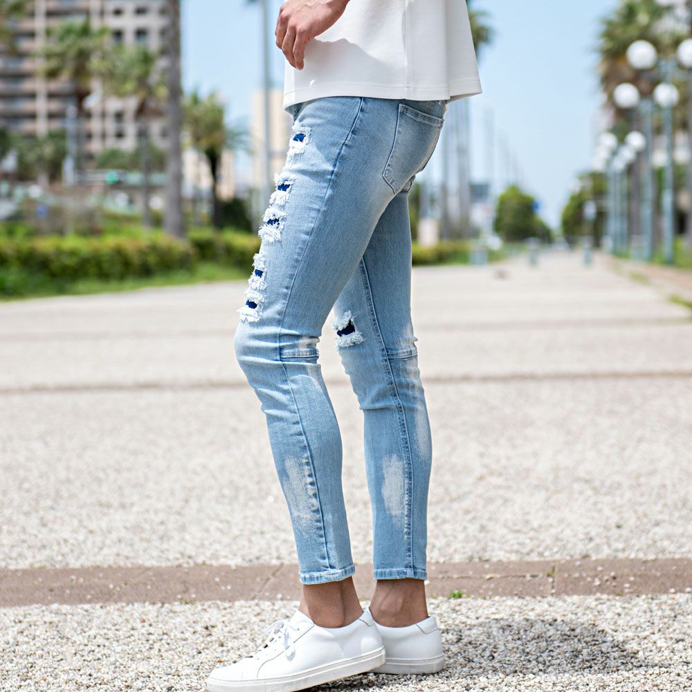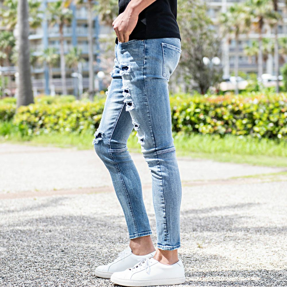 CavariA【キャバリア】ダメージスキニーデニムパンツ/全4色