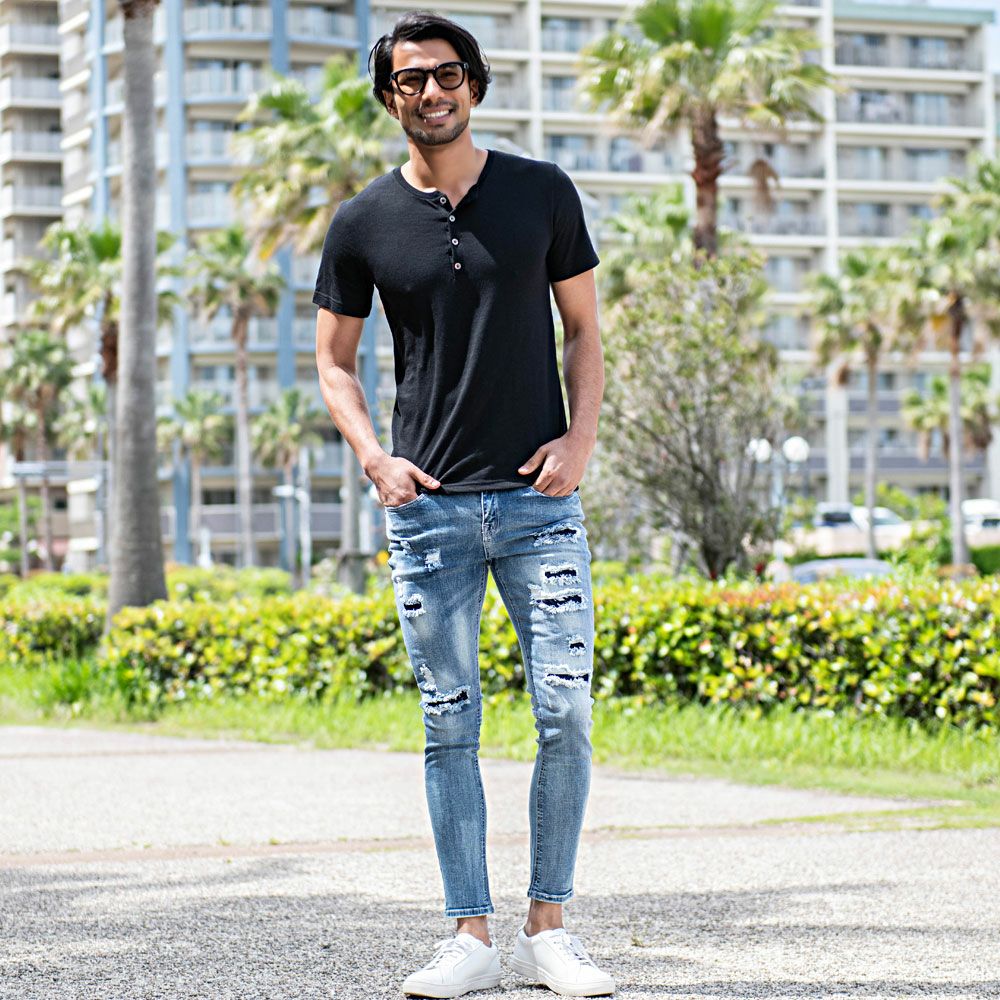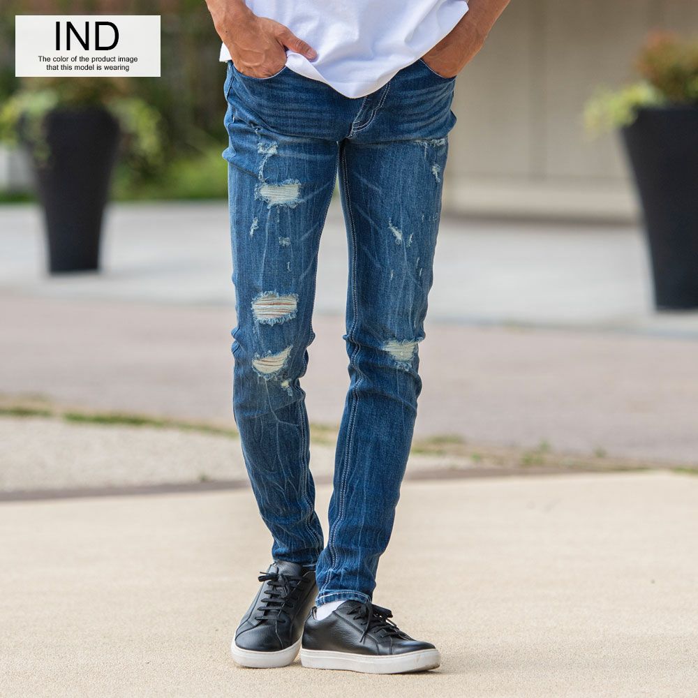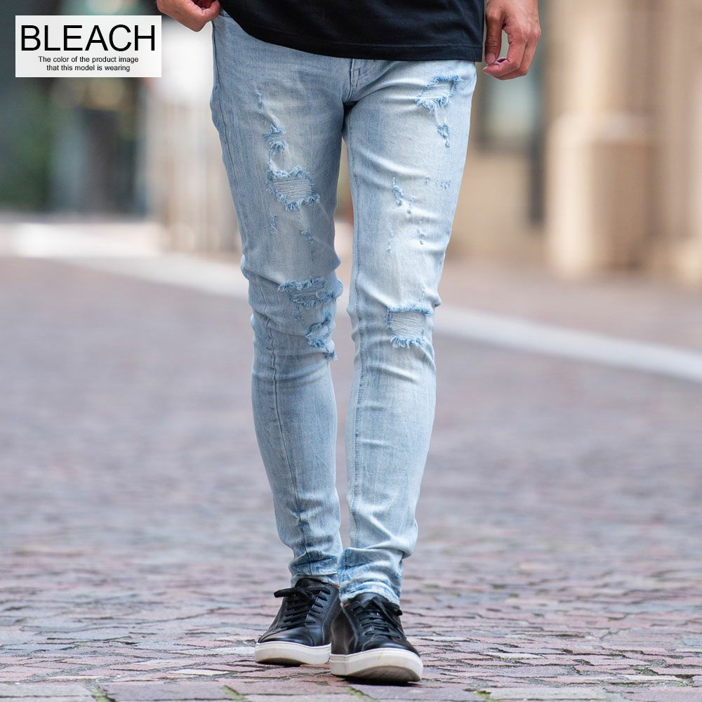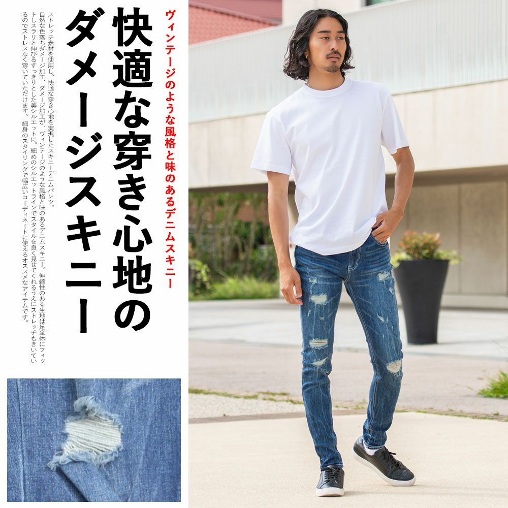 CavariA【キャバリア】ダメージスキニーデニムパンツ/全4色