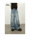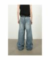 ■細かいダメージ加工が施されたワイドブルーデニム