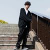 太めのシルエットながら綺麗なパンツラインを実現しました。