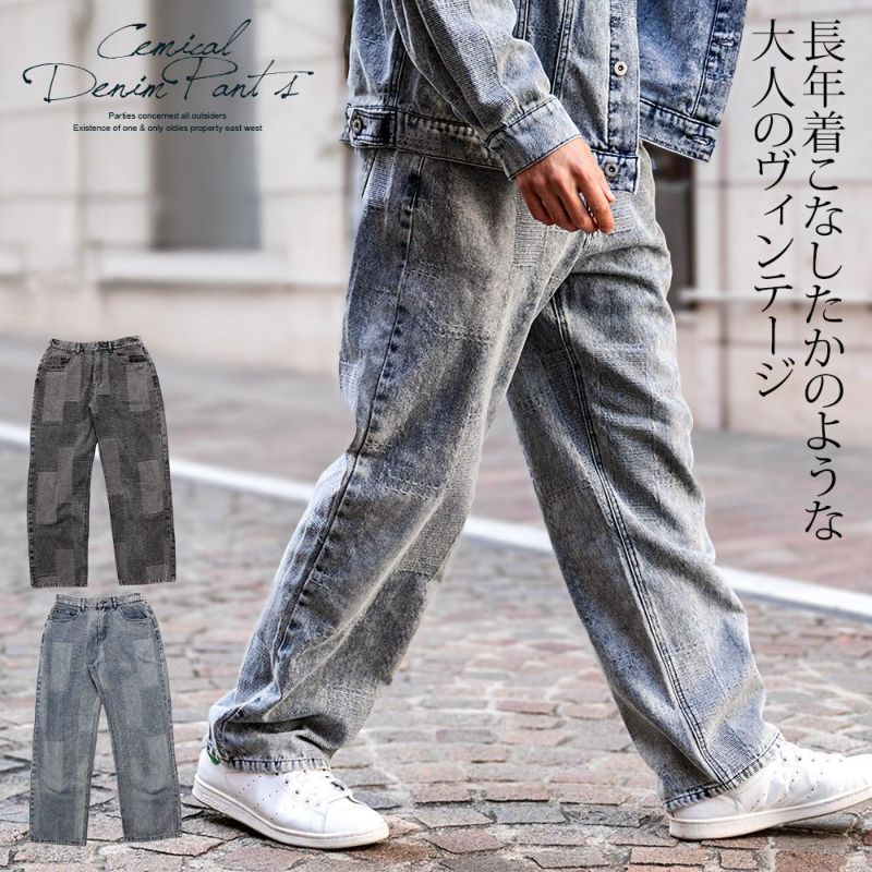独特な色落ちが魅力のケミカルブリーチを施したデニムパンツ。