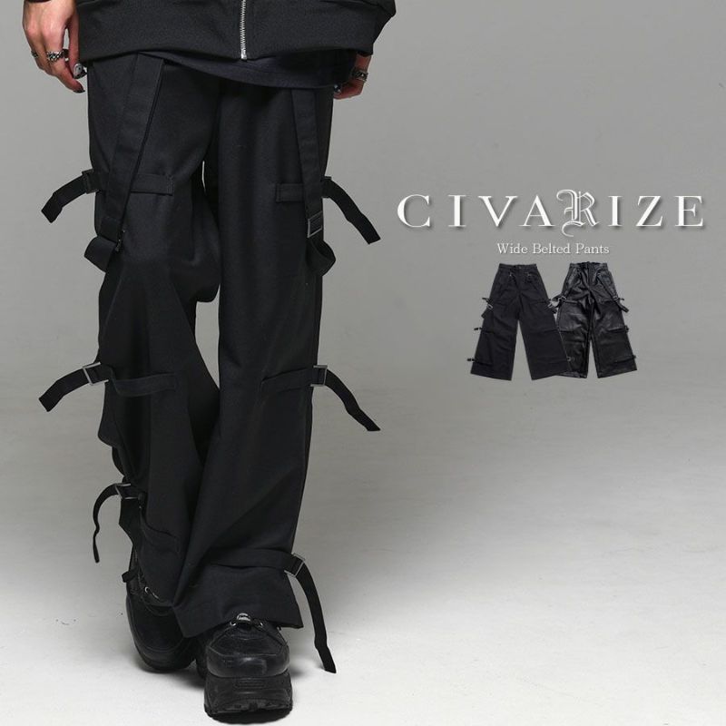 SILVER BULLET(シルバーバレット)にCIVARIZE 2022 S/S collectionからサスペンダー付きワイドベルテッドパンツが登場。サスペンダー付きのベルトデザインワイドパンツとなり、今回はスーツのようなTR素材とPUレザー素材の2種展開になっています。両脇に3つずつアジャストベルトを付けているので、ワイド/しぼりの2wayシルエットで着用することが可能です。ボンテージライクな垂れ下げるアジャストベルトがCIVARIZEらしいモードなヴィジュアルを表現しています。見る角度でデザインに変化がつく存在感抜群なワイドパンツはメンズ、レディースを問わず、オススメなワイドパンツです。【カラー展開】A(TR素材)B(PUレザー)