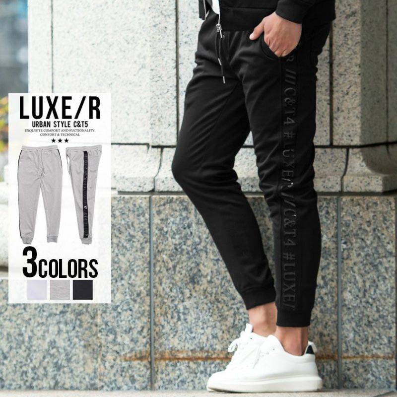 ※モデル画像は照明などの影響により実際の商品と異なる場合がございます。【パンツ メンズ リブ スウェットパンツ ジョガーパンツ エンボス ライン プリント ストレッチ ラグスポ ラグジュアリー スポーツ グレー ブラック ホワイト 白 黒 ジム ウエストゴム セットアップ可 M L XL BITTER系 ビター系 春 春服】