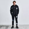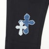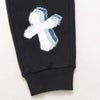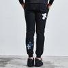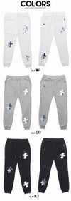 クロスモチーフのデニムワッペンを大胆にあしらった、存在感抜群のスウェットパンツです。