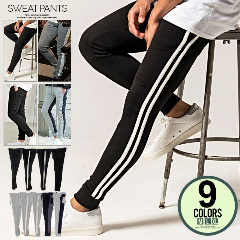 スウェットパンツ メンズ ラインパンツ リブパンツ スエットパンツ ジョガーパンツ 大人 カジュアル ファッション 美脚 スポーツ スリム 細身 タイト ブラック グレー 黒 M L XL 春 夏 秋 冬 ルームウェア 部屋着 テレワーク おしゃれ CavariA キャバリア 東京 ストリート ストリート系 ストリートファッション プレゼント 贈り物 ギフト