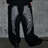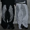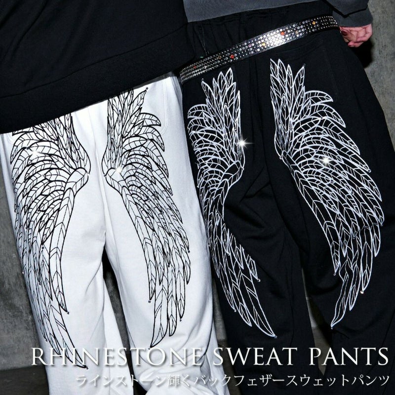 バックにY2Kを意識したラインストーン装飾をした羽のプリントを配置したスウェットワイドパンツです。