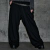 ウエストはベルトループ付きで紐&ゴムシャーリングのイージー仕様で股上を深く確保したリラックスした穿き心地、足元にボリューム感を持たせ存在感のあるワイドシルエットを実現。
