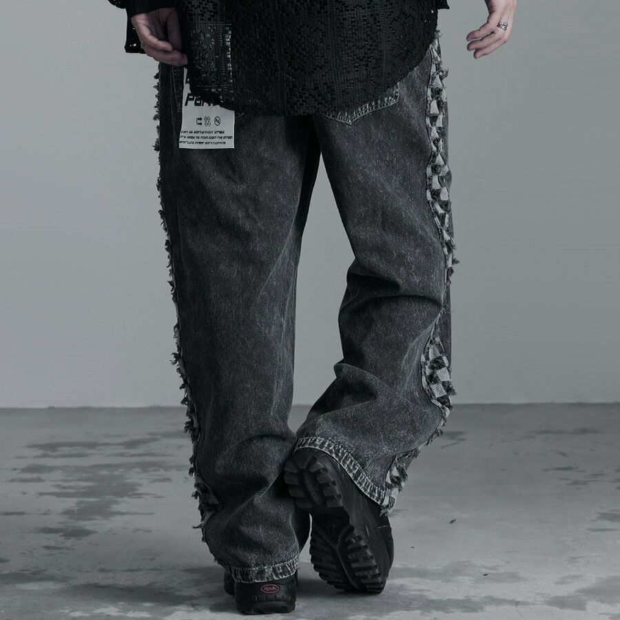 CavariA【キャバリア】サイドフリンジ加工市松柄ワイドバギーパンツ/全2色