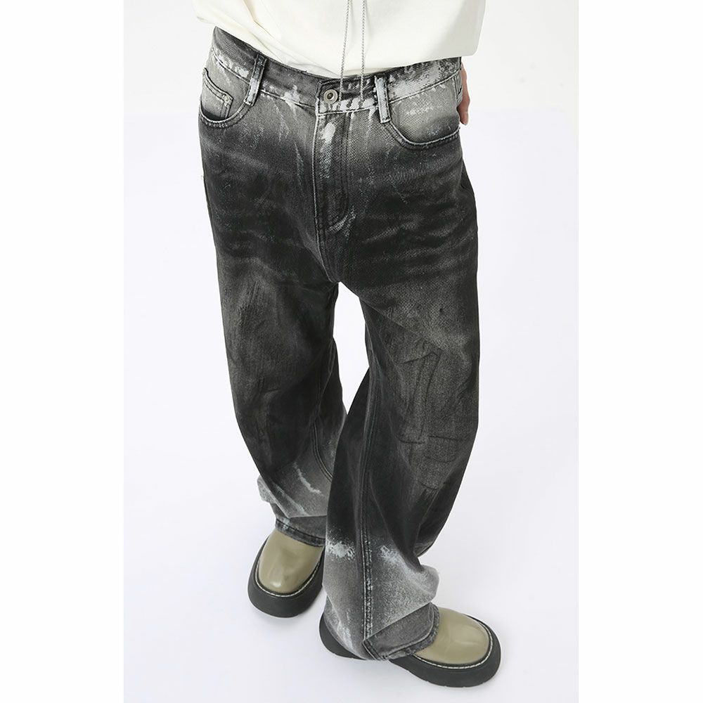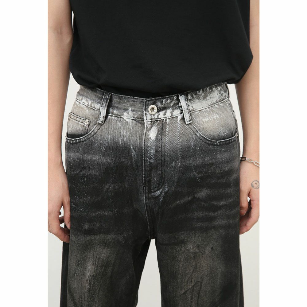 Lazy Tokyo【レイジートウキョウ】ホワイトペイントブラックデニムパンツ/全1色