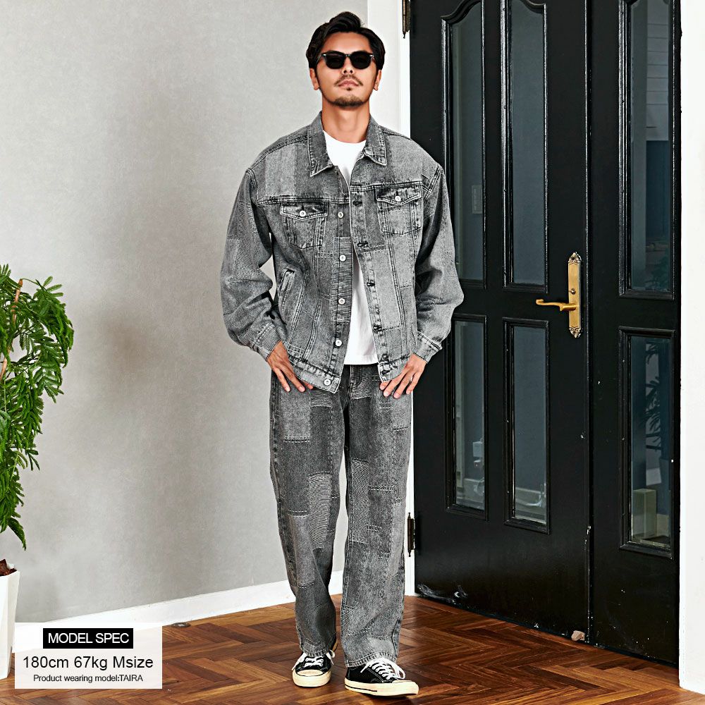 CavariA【キャバリア】ジャガードデニムケミカルバギーパンツ/全2色