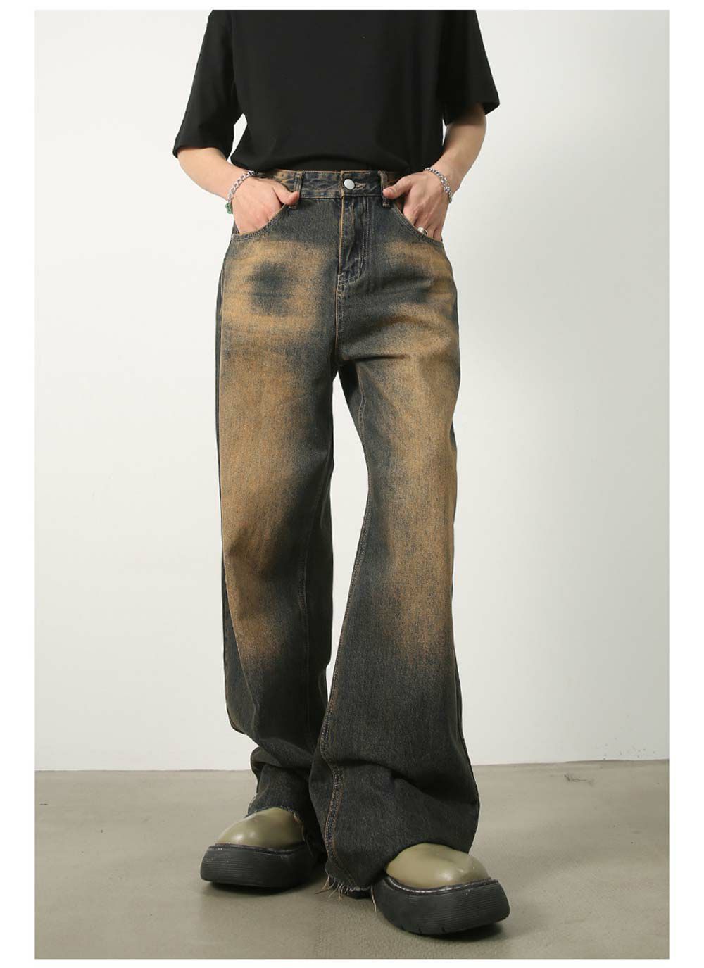 Lazy Tokyo【レイジートウキョウ】ウェイブビアードワイドデニムパンツ/全2色