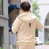 デザイン面では、フロントジップや袖口、フード紐にブランドロゴをあしらい、さりげなくも個性を引き立てるアクセントをプラス。