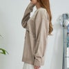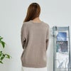 襟・袖・裾はリブ編みに切り替えることでシルエットをすっきり見せつつ、伸縮性がありストレスフリーな着用感。