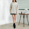 シンプルなクルーネックで着回しやすく、デニムやスカートなど様々なボトムスと好相性。