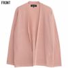 フロントのボタンがなくすっきりとしたデザインとリラックス感のあるカーディガン。