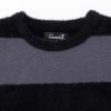 羽毛のようにふわふわとした長い毛足が特徴のフェザーヤーンニット素材を使用したボーダー柄のセーター。