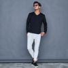 程よく開いたVネックはすっきりとした色気のある首元に魅せてくれます。