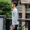 レギュラーサイズの無地ロンTでオールシーズン着まわせるアイテム。