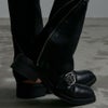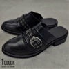 ダブルハトメデザインのバックルベルト付きメンズミュール。