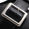 バックルにはアクセントとなるシルバー金具を採用し、オールブラックの中に程よい輝きをプラス。シンプルながらもさりげなくモードな雰囲気を添えています。