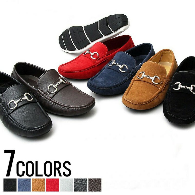 カラフルに足元を彩るフェイクスウェードドライビングシューズ。